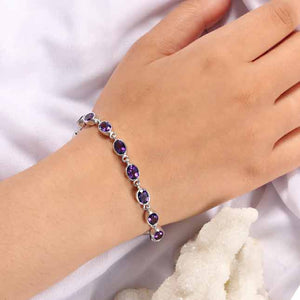 This Amethyst Bracelet-(AMT-RDB-113-CUT.) is curated with the sheer attention to detail to compliment the wearer's wrist in the best possible way. The elegant design of this bracelet is something to fall for. It can be paired up with a wristwatch to take the overall appearance to a whole new level. A person's wrist is believed to be the path from which the stone's concentrated qualities & powers enter the body. Thus, it benefits the wearer to the maximum. Also, matching earrings can be worn with the bracelet to enhance it further. Wearing this bracelet will let the vibe spread. This bracelet comes with a promise and responsibility of making the wearer feel beautiful inside out. Amethyst is the stone that can develop a powerful connection with the spiritual energy of the wearer. This stone eliminates or removes any negative or evil energies residing within a person or surrounding her. Amethyst forms a layer of protective aura around the wearer, thus purifying her vibes. Amethyst is available mostly in purple color, which is symbolic of spirituality and luxury. So, wearing this stone as a 925 sterling silver jewelry will make you the most sought after person in the town. The vibrations of this stone best compliment the energies of Aquarius and is most beneficial in healing the crown chakra. Also, it cures the problems of insomnia and nightmares.