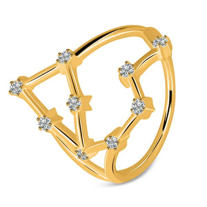 Aquarius Zodiac Star Constellation With Cubic Zirconia Ring