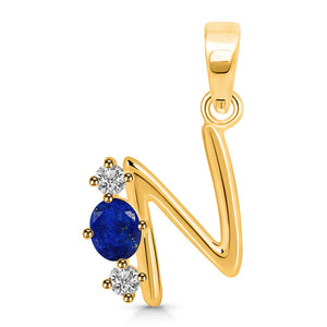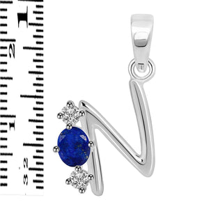 Lapis & White Topaz Alphabet N Pendant