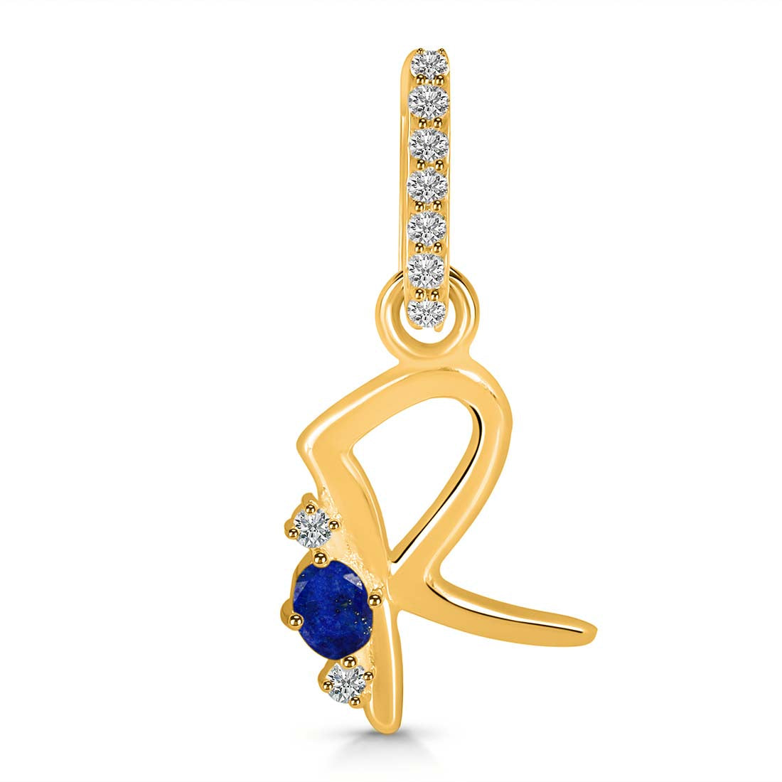 Lapis & White Topaz Alphabet R Pendant