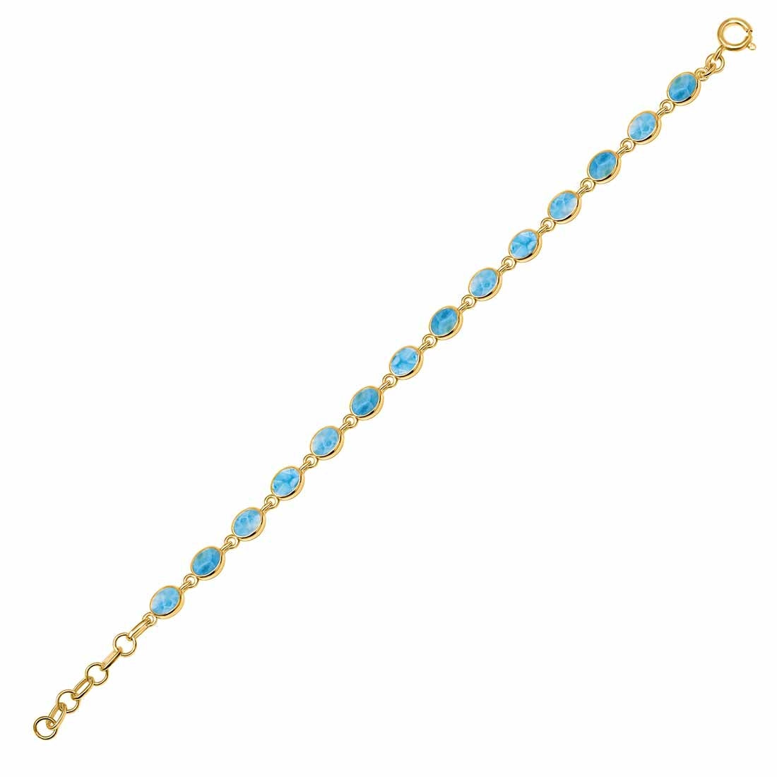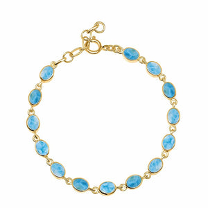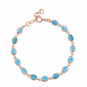 This Larimar Bracelet-(LAR-RDB-113-CAB.) is curated with the sheer attention to detail to compliment the wearer's wrist in the best possible way. The elegant design of this bracelet is something to fall for. It can be paired up with a wristwatch to take the overall appearance to a whole new level. A person's wrist is believed to be the path from which the stone's concentrated qualities & powers enter the body. Thus, it benefits the wearer to the maximum. Also, matching earrings can be worn with the bracelet to enhance it further. Wearing this bracelet will let the vibe spread. This bracelet comes with a promise and responsibility of making the wearer feel beautiful inside out. Larimar is a member of a ‘silicate mineral’ family that forms 90% of the earth’s crust and is used to curate beautiful larimar jewelry. With a silky shine, the white lines on turquoise blue larimar stone gives the appearance of a deep blue sea. The larimar stone used for curating jewelry at Rananjay Exports is authentically sourced from the Dominican Republic, in the Caribbean. These stones are then embedded in a 925 sterling silver setting to form the most beautiful jewelry for wholesale. It is symbolic of peace and clarity of mind that helps to cure, stress & anger issues, phobias, and panic attacks. Also, it balances the third eye, crown, throat, and heart chakras.